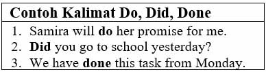 | Gambar 1.0. Contoh Kalimat Do, Did, Done |