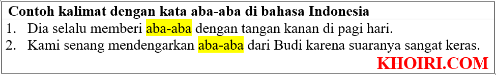 Menurut Kamus Besar Bahasa Indonesia edisi ketiga, aba-aba adalah sebuah kata benda atau nomina, aba-aba artinya kata perintah di baris-berbaris, gerak badan, dan sebagainya seperti aba-aba Siap grak, Maju jalan, berhenti.
