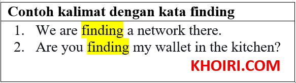 Finding artinya menemukan atau mengetahui, Finding merupakan kata kerja yang mendapatkan imbuhan -ing, dimana kata Finding bisa digunakan pada tenses present continuous, past continuous, present perfect continuous dan past perfect continuous.
