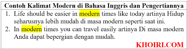 Berikut adalah 28 contoh kalimat dengan kata modern di bahasa Inggris dan artinya di bahasa Indonesia. Jika Anda memiliki pertanyaan, silakan tulis di kolom komentar di bawah :