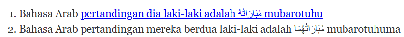 - Bahasa Arab pertandingan mereka berdua laki-laki adalah مُبَارَاتُهُمَا mubarotuhuma