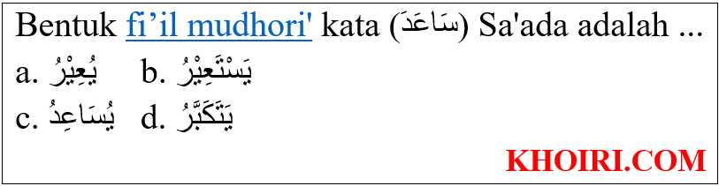 Bentuk fi’il mudhori’ kata (سَاعَدَ) Sa’ada adalah …