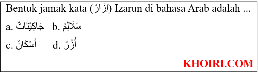 - Bentuk jamak taksir kata (اِزَارٌ) Izarun adalah (أُزُرٌ) ٍUzurun, (اِزَارٌ) Izarun artinya sarung di bahasa Indonesia.