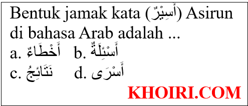 1. Bentuk jamak kata (أَسِيْرٌ) Asirun adalah (أَسْرَى) ٍِAsro, (أَسِيْرٌ) Asirun artinya tawanan di bahasa Indonesia.