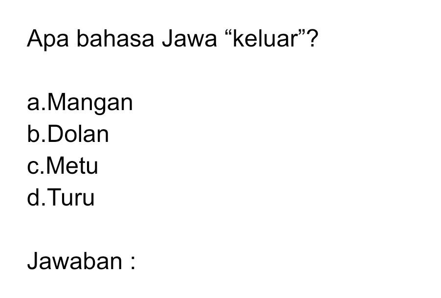 Apa bahasa Jawa “keluar”?